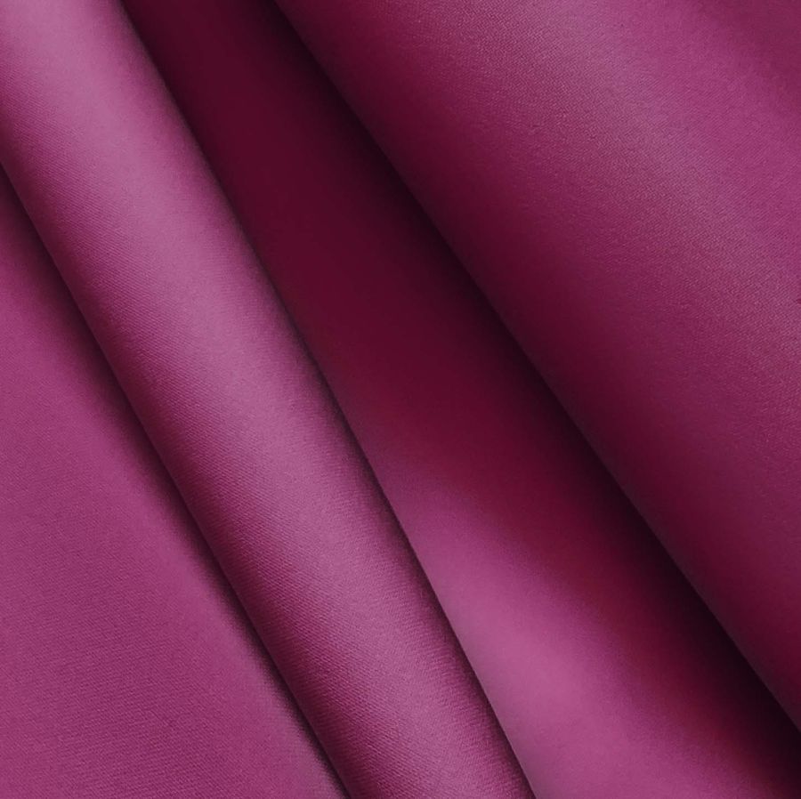 La tela base es Poliester Reciclado Deportivo - Basic, con un gramaje ligero de 145 gr/m2 y una composición de 93% POLIÉSTER y 7% ELASTÓMERO. El color liso impreso es un vibrante tono de morado llamado Pensamiento Púrpura, con un CMYK de 41 98 32 37. Este color aporta un toque de intensidad y profundidad a la tela base, combinando particularmente bien con tonos neutros y oscuros, como el negro, gris o azul marino.