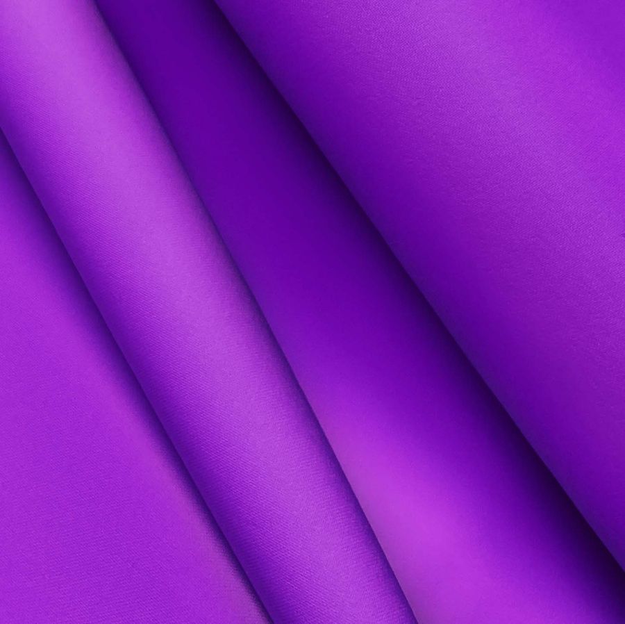 La tela base es el Poliester Reciclado Deportivo - Basic, compuesta por un 93% de poliéster y un 7% de elastómero, con un gramaje de 145 gr/m2 y un ancho de 145 cm. Su color liso impreso es un Morado-Violeta Francés, cuyo CMYK es 73 85 0 0. Este color crea una sensación de misterio y elegancia, simbolizando la riqueza y la creatividad. Combina bien con tonos plateados, grises, magentas y cerezas. La tela está impresa con el color liso en una sola cara por impresión digital textil.