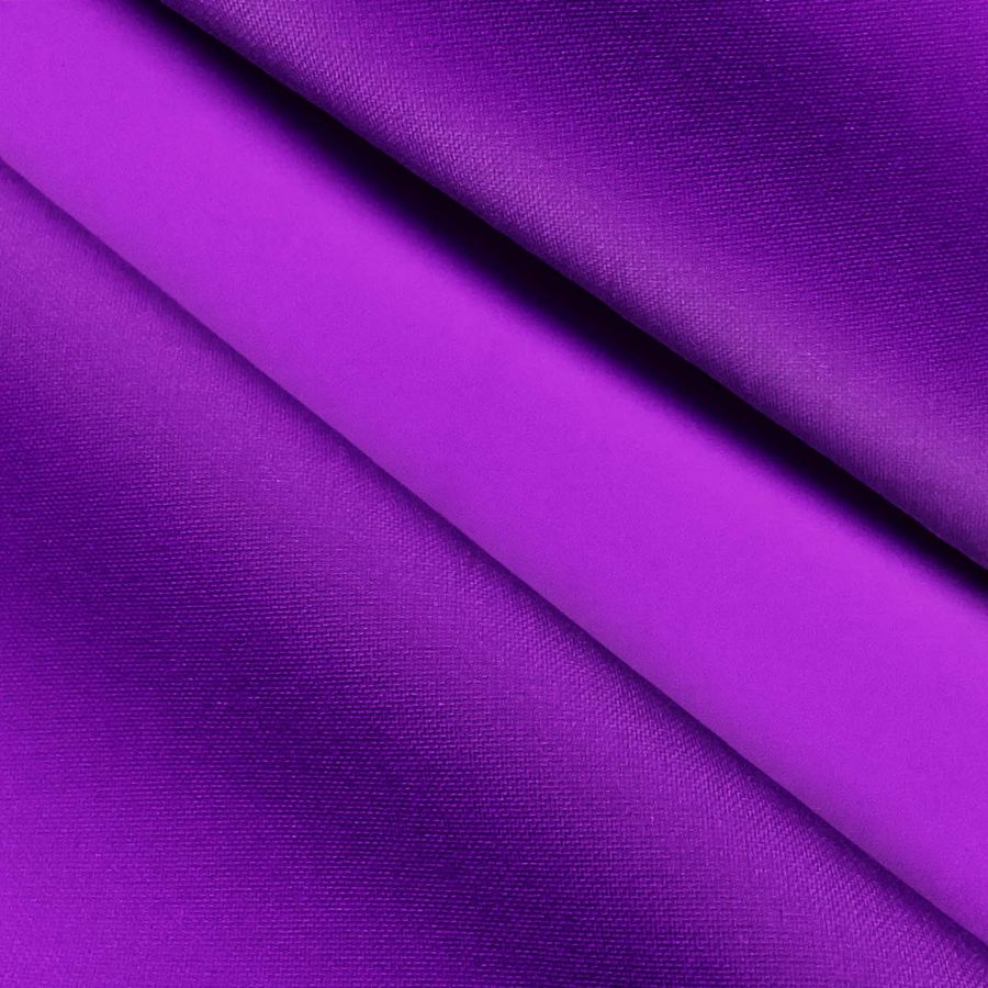 La tela base es Poliéster Reciclado Deportivo - Basic, compuesta en un 93% de poliéster y un 7% de elastómero. Con un gramaje de 145 gr/m2 y un ancho de 145 cm, la tela es de consistencia suave y su estructura es lisa al tacto. El color impreso es un tono de morado-violeta oscuro con una mezcla de tinta Cyan del 70% y Magenta del 85%. El color rojo oscuro es elegante y se mezcla bien con tonos claros, como el rosa y el gris. La tela está impresa con el color liso a una sola cara por impresión digital textil, lo que significa que no es un tejido tintado sino impreso por una sola cara.