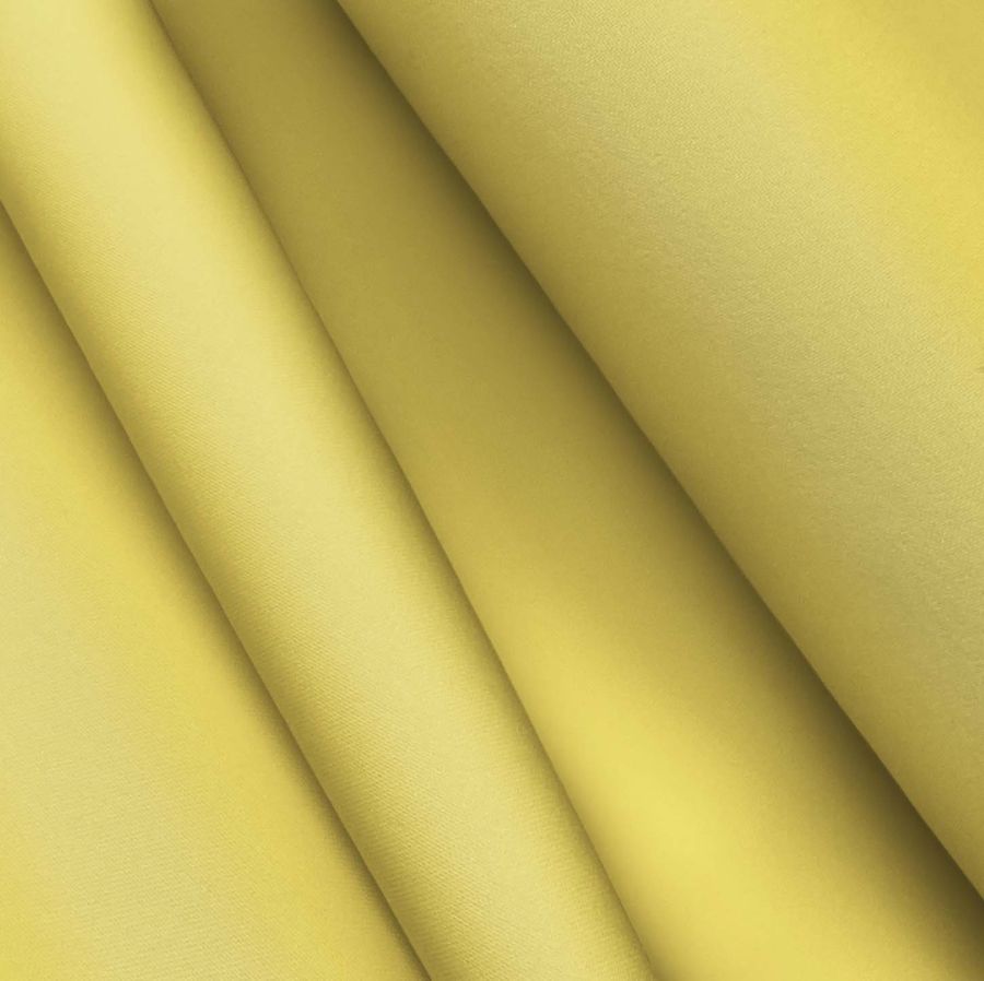La tela en cuestión es el Poliéster Reciclado Deportivo - Basic, con una composición del 93% poliéster y 7% elastómero, un gramaje de 145 gr/m2 y un ancho de 145 cm. Respecto al color liso impreso, se trata de un tono amarillo de China con un CMYK de 4 12 72 0. Este color secundario se caracteriza por su vibrante intensidad que evoca al sol y la energía, y combina especialmente bien con otras tonalidades cálidas como el naranja, el rojo y el rosa.