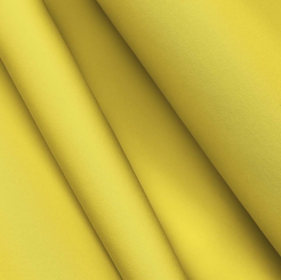 La tela base es el Poliester Reciclado Deportivo - Basic de 145 gr/m2 y 145 cm de ancho, compuesta por un 93% de poliéster y un 7% de elastómero. El color liso impreso es un alegre amarillo girasol con un CMYK de 2 13 81 0. Este color secundario evoca la energía y vitalidad del sol, combinando bien con tonos neutros como el gris o el azul marino, así como con tonos complementarios como el rosa o el morado.