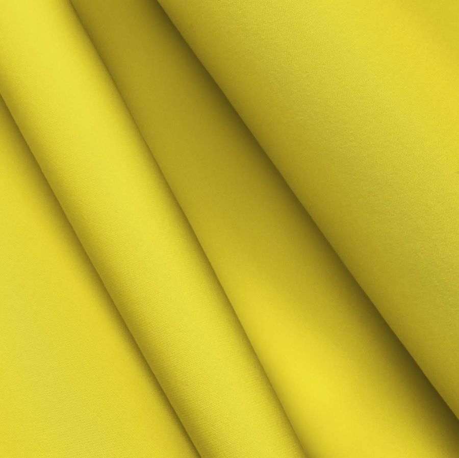 La tela base es Poliester Reciclado Deportivo - Basic, con una composición de 93% poliéster y 7% elastómero, un gramaje de 145 gr/m2 y un ancho de 145 cm. El color liso impreso es un Amarillo Goya, con un CMYK de 2 10 86 0. Este color es vibrante y brillante, que se destaca como una luz radiante. Combina bien con otros tonos brillantes como el naranja y el verde, así como con tonos más sutiles como el blanco y el gris.