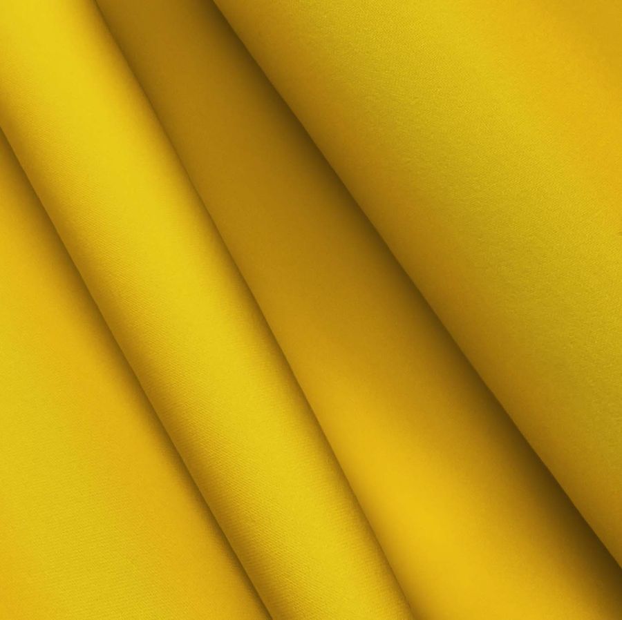 La tela base de este tejido es un Poliester Reciclado Deportivo - Basic de composición 93% POLIÉSTER y 7% ELASTÓMERO. Su color liso impreso es un amarillo jirafa con un CMYK de 2 36 93 0. Este color secundario es un tono cálido, que transmite energía y vitalidad. Combina perfectamente con otros colores tierra y neutros como el beige y el marrón, así como con tonos más atrevidos como los rojos y los naranjas. El tejido está impreso con el color liso a una sola cara por impresión digital textil, lo que significa que el otro lado de la tela es blanco.