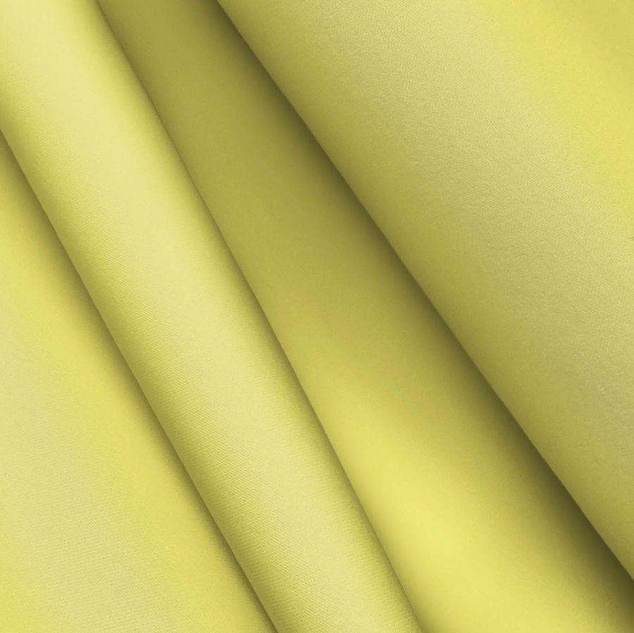 La tela base es el Poliéster Reciclado Deportivo - Basic, con una composición del 93% de poliéster y un 7% de elastómero. Con un gramaje de 145 gr/m2 y un ancho de 145 cm, esta tela es suave al tacto y presenta una superficie lisa y uniforme. La tela está impresa con un color liso en amarillo níquel-titanio, con una tinta Cyan del 5, Magenta del 0, Yellow del 70 y negro del 0, con un CMYK de 5 0 70 0. Este color es una combinación de amarillo y gris, creando un tono suave y cálido que puede combinarse perfectamente con tonos neutros como el blanco, negro y gris.