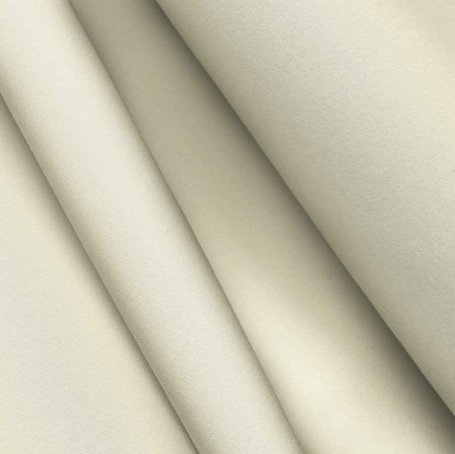 La tela base es el Poliester Reciclado Deportivo - Basic, con una composición de 93% POLIÉSTER y 7% ELASTÓMERO, gramaje de 145 gr/m2 y ancho de 145 cm. El color liso impreso es blanco/crema con una combinación CMYK de 2 0 25 0, lo que indica una dominancia del pigmento amarillo. El tono resultante es suave y monocromático, combinando bien con colores terrosos y cálidos. El tejido está impreso con color liso a una sola cara por impresión digital textil.