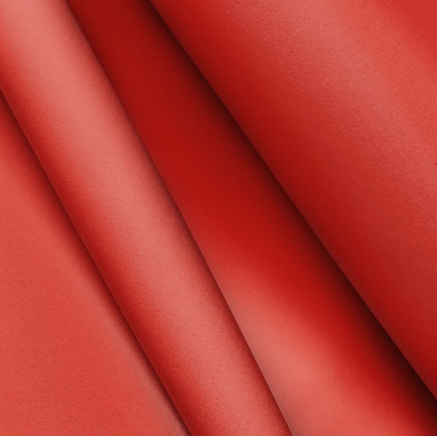 La tela base es el Poliester Reciclado Deportivo - Basic, compuesta por 93% poliéster y 7% elastómero, con un gramaje de 145 gr/m2 y una anchura de 145 cm. Su color liso impreso es un rojo bermejo con una tonalidad predominante de magenta y amarillo, como se refleja en el contenido del CMYK del color liso indicado (11, 93, 93, 2). Este color se combina perfectamente con tonos azules intensos, verdes boscosos y naranjas llamativos.