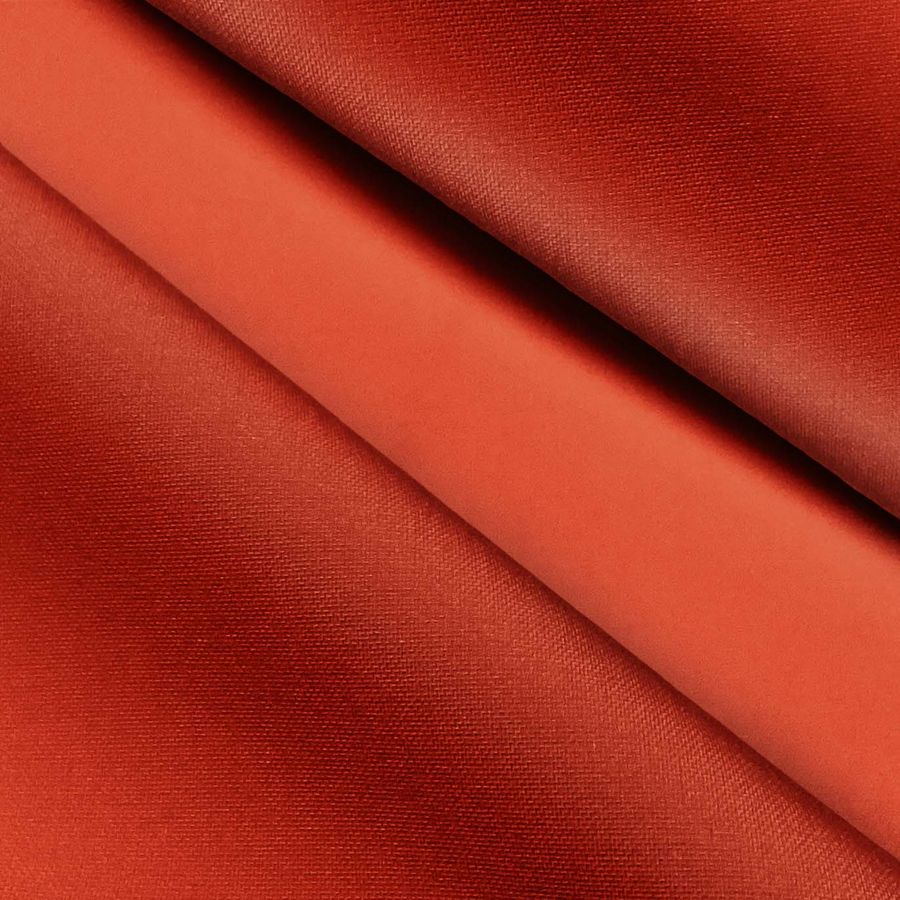 La tela base es el Poliester Reciclado Deportivo - Basic, compuesta por un 93% de poliéster y un 7% de elastómero, con un gramaje de 145 gr/m2 y un ancho de 145 cm. El color liso impreso es un Rojo Bermellón de Holanda, con un contenido de CMYK de 0 91 98 0, lo que indica una alta presencia de magenta y amarillo, formando un tono naranja-rojizo intenso. Combina perfectamente con colores neutros como el gris y el blanco, pero también con verdes y azules oscuros.