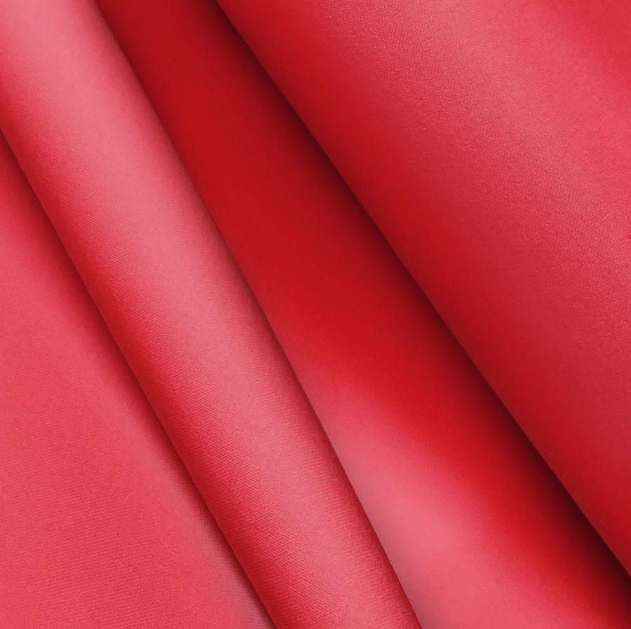 La tela base es el Poliester Reciclado Deportivo - Basic, compuesta por un 93% de poliéster y un 7% de elastómero. Su gramaje es de 145 gr/m2 y su ancho de 145 cm. El color liso impreso es de un Rojo Imperial, con una tinta Cyan de 0, una tinta Magenta de 92, una tinta Yellow de 72 y una tinta Black de 0, lo que en CMYK se traduce en 0 92 72 0. Este color se caracteriza por ser vibrante, intenso y simbolizar la pasión y el poder. Combinado con otros colores, se integra perfectamente con el negro, el blanco, el gris y el azul marino.