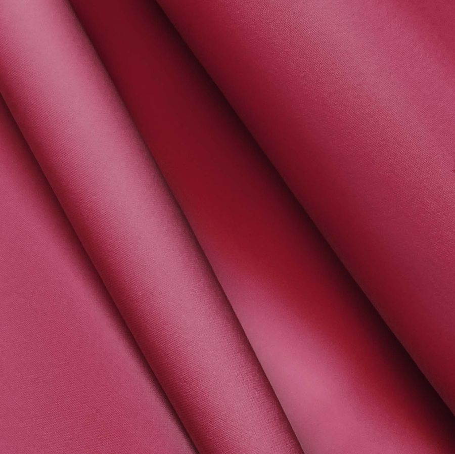 El color Ruby big dip es un color secundario sofisticado, elegante y de carácter potente. Se puede combinar con otros colores cálidos, como el naranja y los colores tierra, así como con tonos neutros como el negro, el blanco y el gris. Por otro lado, el tejido está impreso con el color liso a una sola cara por impresión digital textil, lo que significa que la intensidad del color se mantiene en una cara del tejido.