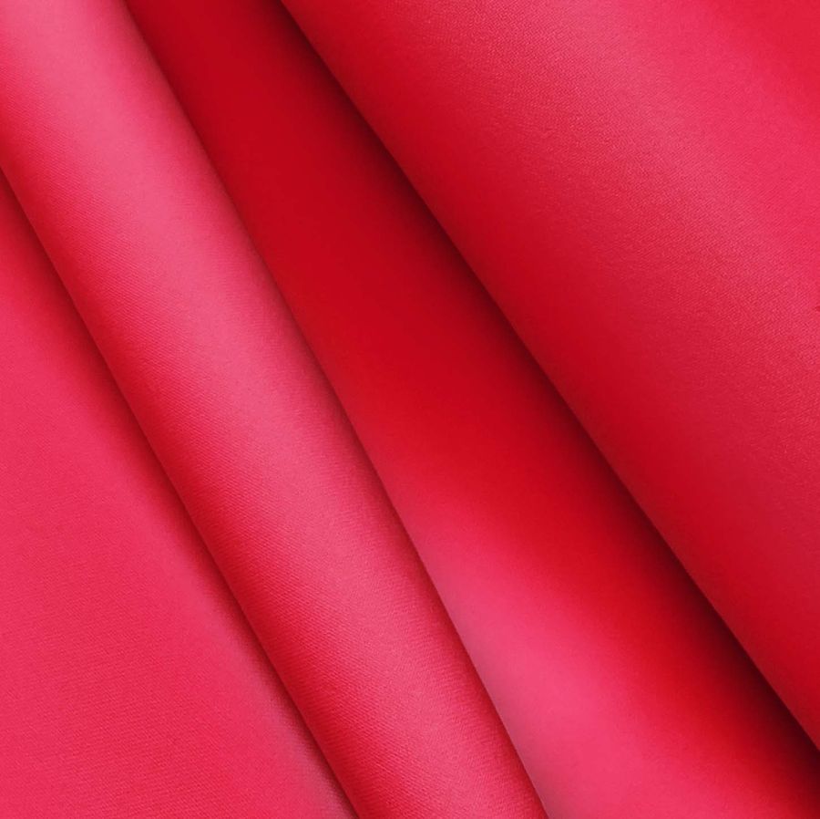 La tela base es el Poliéster Reciclado Deportivo - Basic, con una composición del 93% de poliéster y 7% de elastómero, con un gramaje de 145 gr/m2 y un ancho de 145 cm. Es de color liso impreso en un tono de rojo tractor, que consta de una única cara impresa mediante tecnología de sublimación de poliéster. El CMYK indica una ausencia de cian, 94% magenta, 71% amarillo y cero negro.