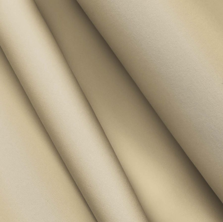 La tela base es el Poliéster Reciclado Deportivo - Basic, compuesta mayoritariamente por poliéster y elastómero, con un gramaje de 145 gr/m2 y un ancho de 145 cm. El color liso impreso es una combinación de verde y avellana representada por un CMYK de 18 24 47 4. Este tono secundario presenta una evocadora mezcla de la vegetación boscosa y la delicadeza primaveral, resultando en un matiz cálido y fresco al mismo tiempo. Combina perfectamente con tonalidades neutras como los diferentes matices del blanco y el gris, así como con tonos terrosos como el marrón y el beige.