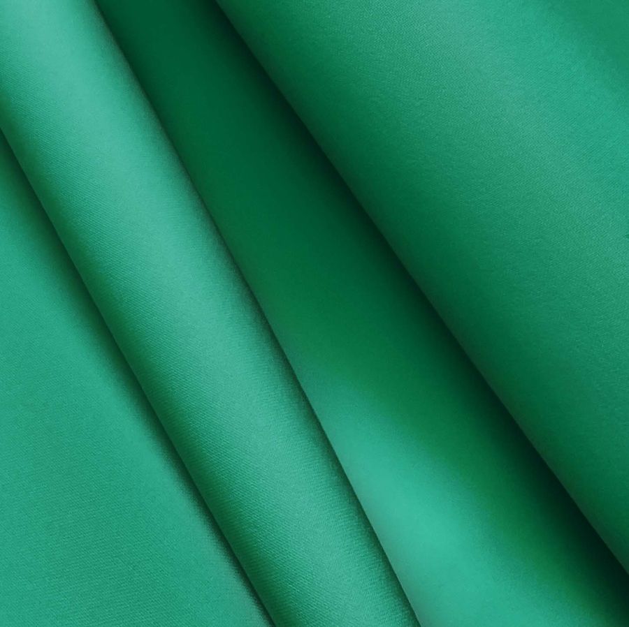 La tela base es Poliester Reciclado Deportivo - Basic, con una composición de 93% poliéster y 7% elastómero y un gramaje de 145 gr/m2. El color liso impreso es Verde Cobalto, con un CMYK de 85 23 74 7. Este color tiene una tonalidad azulada vibrante que transmite energía y dinamismo, y se combina bien con colores como el blanco, el negro y el gris para crear contrastes y equilibrio en la paleta de colores del diseño. La tela está impresa con el color liso a una sola cara por impresión digital textil, lo que significa que el color se aplica solo en una de las caras de la tela, en lugar de teñirla uniformemente.