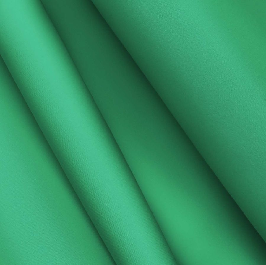 La tela es el Poliester Reciclado Deportivo - Basic de la composición 93% poliéster y 7% elastómero con un peso de 145 gr/m2 y una anchura de 145 cm en color liso impreso en Verde Kelly utilizando una tecnología de impresión por sublimación con un CMYK de 77 12 73 1. Este color simboliza la naturaleza, la frescura y el crecimiento, y técnicamente su alto porcentaje de cian y amarillo le dan un brillo intenso y vibrante, mientras que el magenta le añade profundidad y equilibrio. Combina especialmente bien con blancos, grises, dorados y otros tonos de verde.