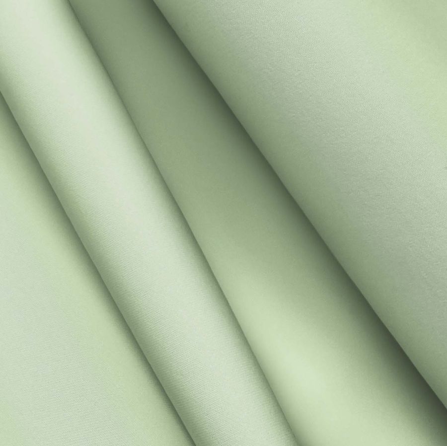 La tela base es Poliéster Reciclado Deportivo - Basic de 145 gr/m2 y 145 cm de ancho. Su composición es 93% poliéster y 7% elastómero. El color liso impreso es verde pastel con CMYK de 28 0 40 0. Este color transmite tranquilidad y armonía, asociado con la naturaleza y la frescura. Combina en particular con tonalidades marfil, arena y gris. La tela está impresa con el color liso a una sola cara por impresión digital textil, lo que garantiza una alta precisión del diseño.