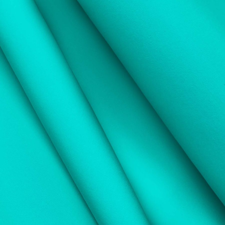 La tela base es Poliester Reciclado Deportivo - Basic, con una composición de 93% poliéster y 7% elastómero. El color liso impreso es un verde claro, similar al tono de Espuma de mar, con un CMYK de 65 0 31 0. El tejido está impreso con el color liso a una sola cara por impresión digital textil, lo que le da una gran durabilidad y resistencia al desgaste.