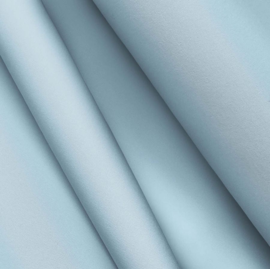 La tela base, poliéster reciclado deportivo - Basic, tiene una composición del 93% de poliéster y un 7% de elastómero, con un gramaje de 145 gr/m2 y un ancho de 145 cm. El color liso impreso es un azul glaciar con un CMYK de 37 6 6 0. El color secundario es un tono azul claro, que simboliza la serenidad y la frescura. Además, se combina perfectamente con colores blancos y grises para crear un ambiente fresco y relajado. La tela está impresa a una sola cara por impresión digital textil.