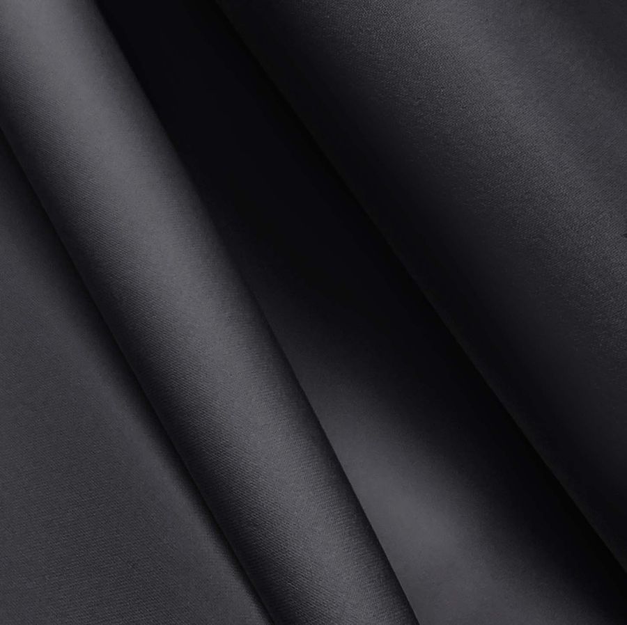 La tela base es un Poliester Reciclado Deportivo - Basic, compuesta en un 93% de poliéster y un 7% de elastómero, con un gramaje de 145 gr/m2 y un ancho de 145 cm. El color liso impreso es un negro intenso, con un valor CMYK de 82 74 56 81, conocido como Gato Negro. Este color simboliza el poder, la elegancia y la sofisticación, y en combinación con tonos claros como el blanco o el gris, crea un equilibrio visual elegante. El tejido está impreso con el color liso a una sola cara por impresión digital textil, lo que permite obtener colores vivos y precisos en la impresión.