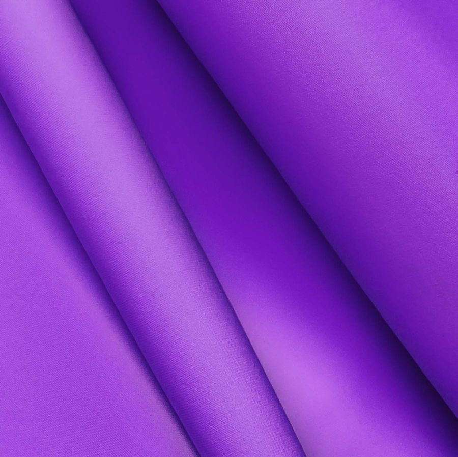 La tela base es el Poliester Reciclado Deportivo - Basic, compuesta por un 93% de poliéster y un 7% de elastómero, con un gramaje de 145 gr/m2 y un ancho de 145 cm. Está certificada como sostenible con la GRS, siendo un tejido reciclado ideal para prendas deportivas y de baño. El color liso impreso es predominantemente azul violeta azulado, con una tinta cyan del 74 y una tinta magenta del 81, lo que proporciona una intensidad y profundidad única en la tonalidad del tejido. El CMYK del color liso indicado es de 74, 81, 0, 0. El tejido está impreso con el color liso a una sola cara por impresión digital textil, no siendo un tejido tintado sino impreso por una sola cara.