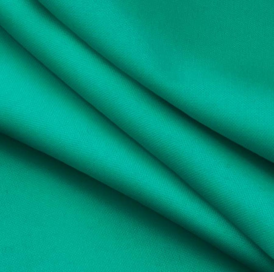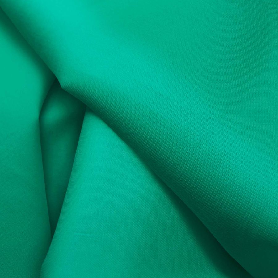 La tela base es Popelin de Algodón Orgánico - Viena, un tejido popelín de 100% algodón orgánico con un gramaje de 130 gr/m2 y un ancho de 150 cm. El color liso impreso es un verde acuático con un CMYK de 82 16 62 2, transmitiendo una sensación de frescura y calma. Es un color que se combina perfectamente con otros tonos verdes, azules y blancos. La tela está impresa a una sola cara por impresión digital textil, lo que significa que el tejido en sí mismo no es de color, sino blanco, y se le aplica el color mediante la tecnología de impresión.