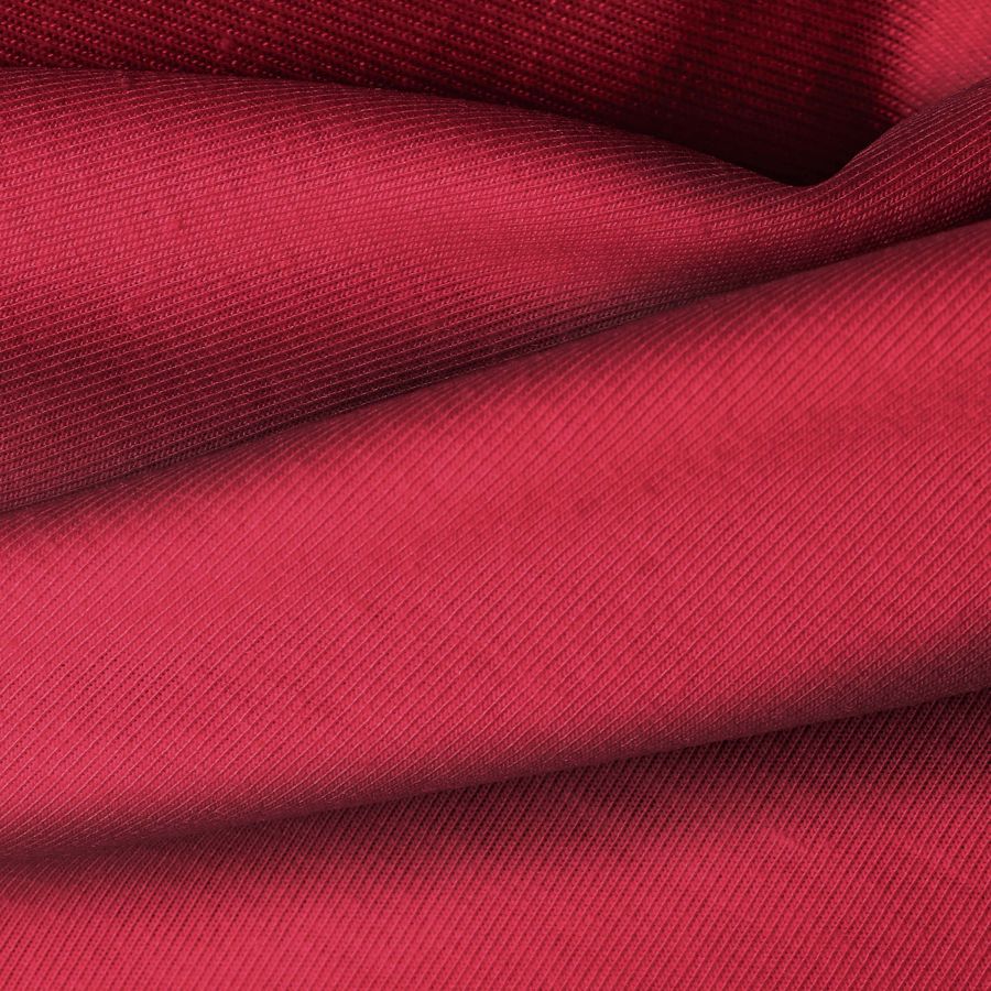 La tela base de esta descripción es el Punto Camiseta - Vanity, con un color liso impreso en tonalidades de Rojo Escarlata. El CMYK del color impreso es 24 98 73 20. Este color secundario es vibrante y pasional, simbolizando fuerza y pasión. Combina muy bien con colores neutros como blanco y negro, así como con tonos cálidos como el naranja o el amarillo.