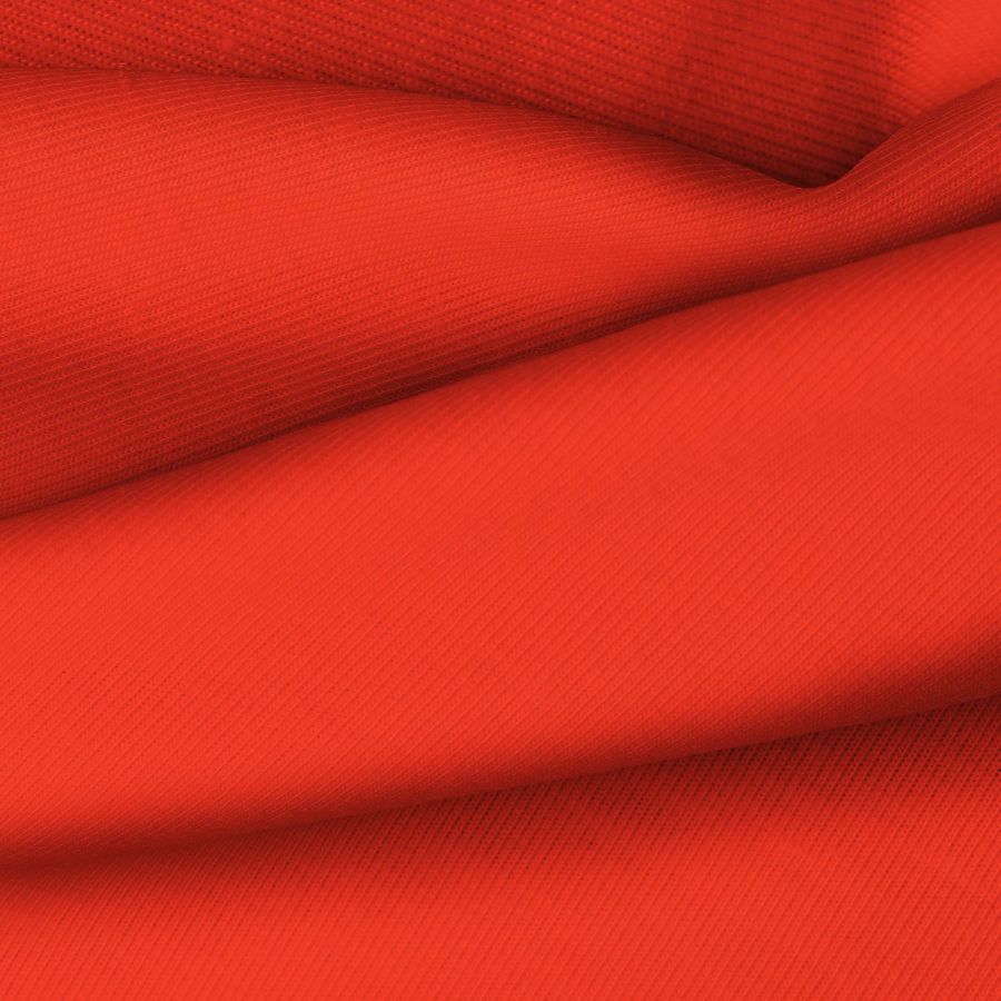La tela base de esta prenda es Punto Camiseta - Vanity en color Rojo Ferrari, con un tono vibrante y intenso reflejado en el CMYK 0 92 91 0. Este color rojo se caracteriza por su fuerza, pasión y energía, combinando perfectamente con tonos neutros como blanco, negro y gris, así como con tonos complementarios como verde y azul.