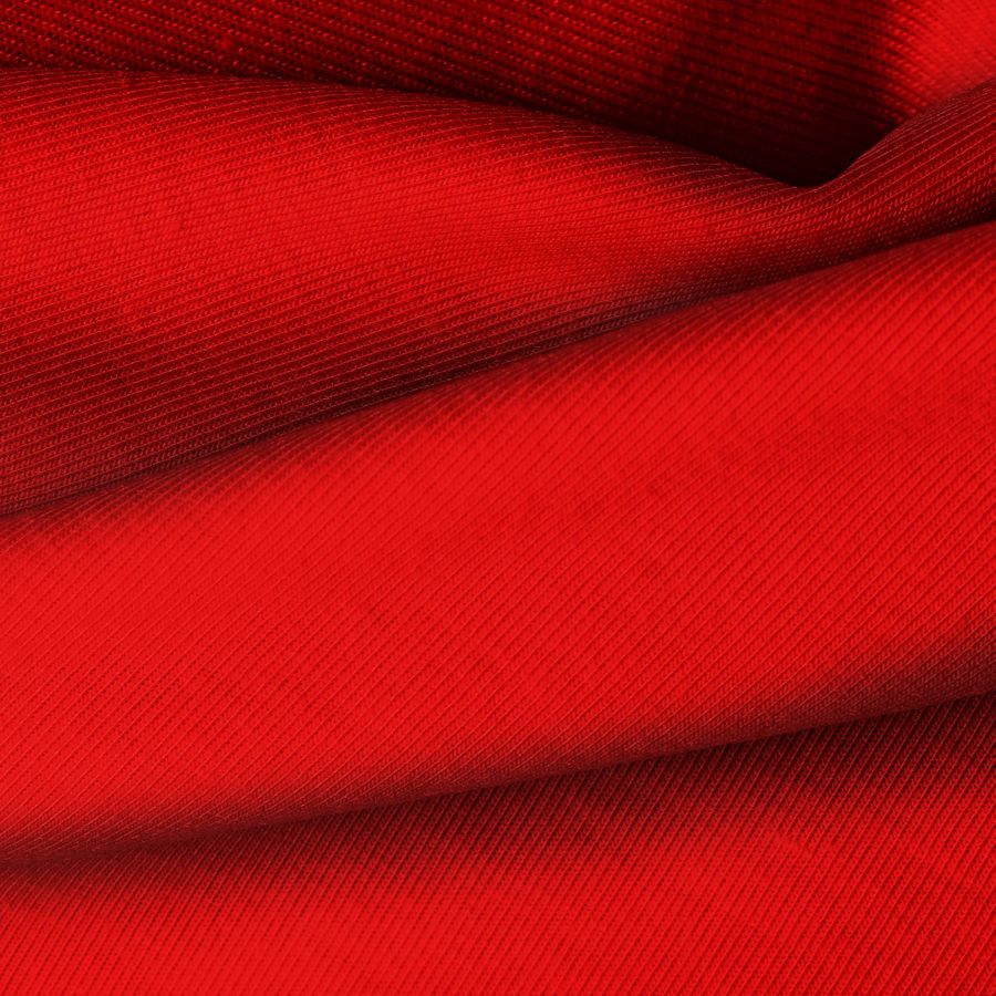 La tela base es Punto Camiseta - Vanity, de composición 95% POLIÉSTER, 5% ELASTÓMERO, con un gramaje de 185 gr/m2 y color Rojo Oscuro (CMYK: 15 100 100 7). Este color simboliza la pasión y la energía, combinando a la perfección con tonos neutros como el blanco y el negro.