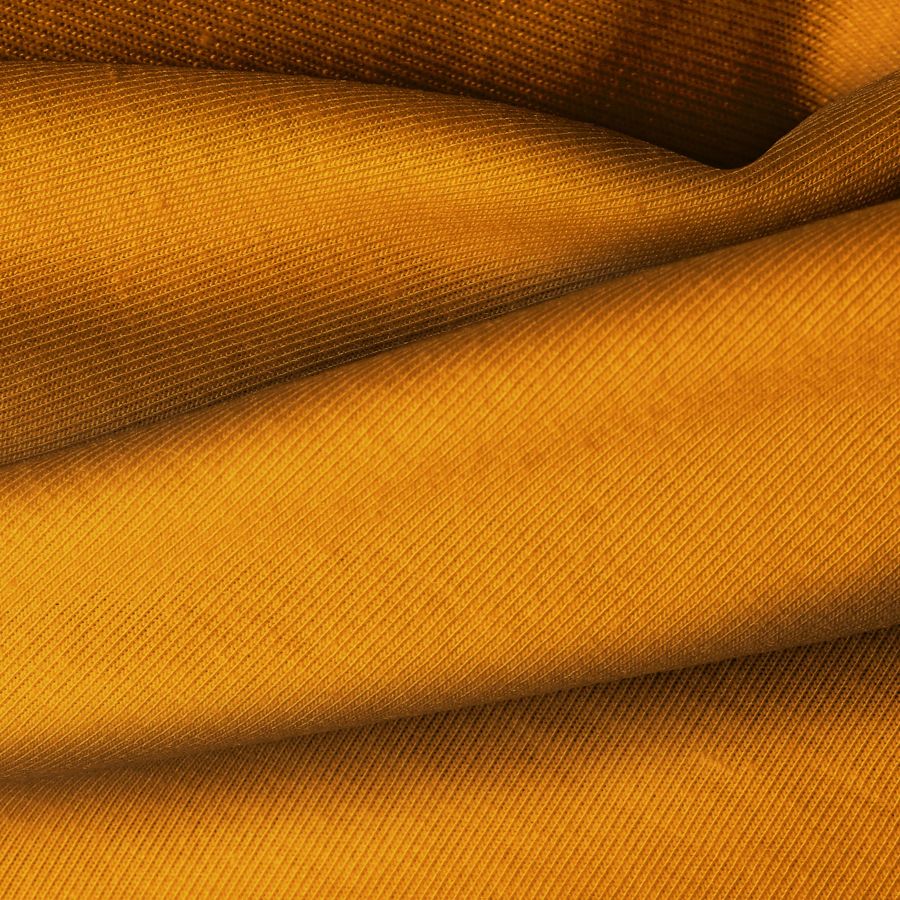 La tela base, Punto Camiseta - Vanity, es una suave tela de punto compuesta por 95% poliéster y 5% elastómero, con un gramaje de 185 gr/m2 y un ancho de 160 cm. El color liso impreso en esta tela es un vibrante tono de naranja albaricoque, con una combinación de tintas de 20% de cyan, 65% de magenta, 100% de yellow y 9% de black en el CMYK. Este color secundario se caracteriza por ser cálido, alegre y llamativo, combinando especialmente bien con tonos neutros como blanco, gris y negro.