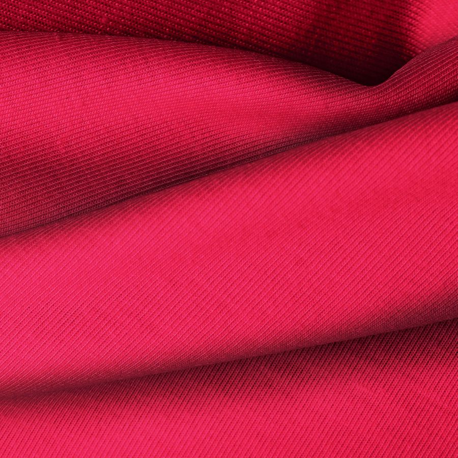 La tela base de esta descripción es el Punto Camiseta - Vanity, la cual tiene un color liso impreso en tonos Rosa y Encarnado, con un CMYK de 5 98 69 1. Este color simboliza delicadeza y pasión, y combina especialmente bien con tonos neutros como blanco, gris y negro.