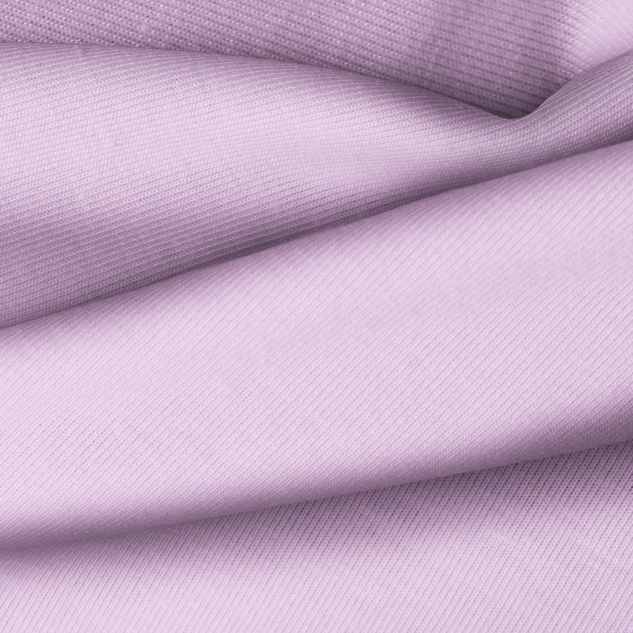 La tela base, Punto Camiseta - Vanity, es de punto con una composición de 95% poliéster y 5% elastómero, de color liso impreso en tonos Rosa y Bígaro, con un CMYK de 16 39 0 0. Este color secundario se caracteriza por una mezcla entre el rosa claro y un tono morado suave, lo que lo hace ideal para crear un aspecto delicado y elegante. Combina especialmente bien con tonos neutros como blanco, gris y negro, así como con colores pastel para un look más suave.
