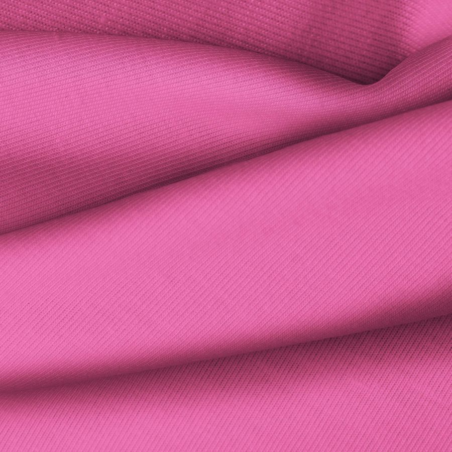 La tela base utilizada para este tejido es el Punto Camiseta - Vanity, de composición 95% poliéster y 5% elastómero, con un gramaje de 185 gr/m2. El color liso impreso es un tono rosa fandango, con CMYK 8 80 19 0, lo que le otorga un aspecto vibrante y llamativo. Este color combina especialmente bien con tonos neutros como el blanco, negro y gris, resaltando su intensidad y brillo.