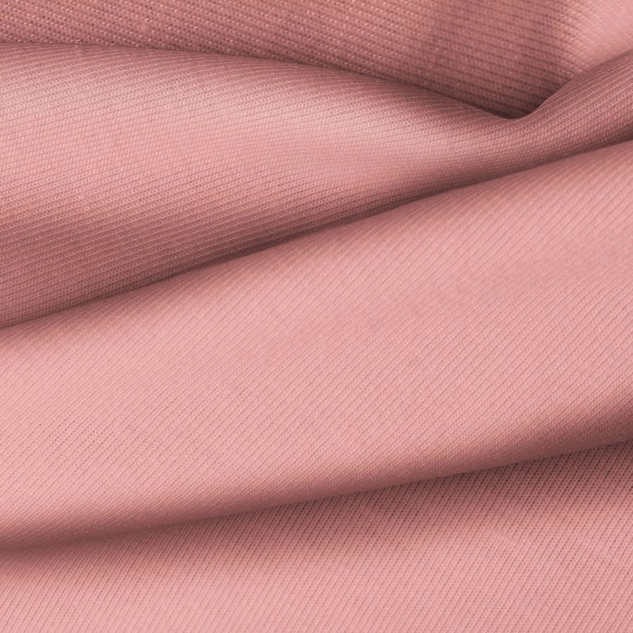 La tela base es la Punto Camiseta - Vanity en color Rosa, New York, con un CMYK de 13 57 42 2. Es un tejido suave y elástico, ideal para prendas de moda y deportivas. El color secundario es un rosa brillante que combina muy bien con colores neutros como blanco, negro y gris.