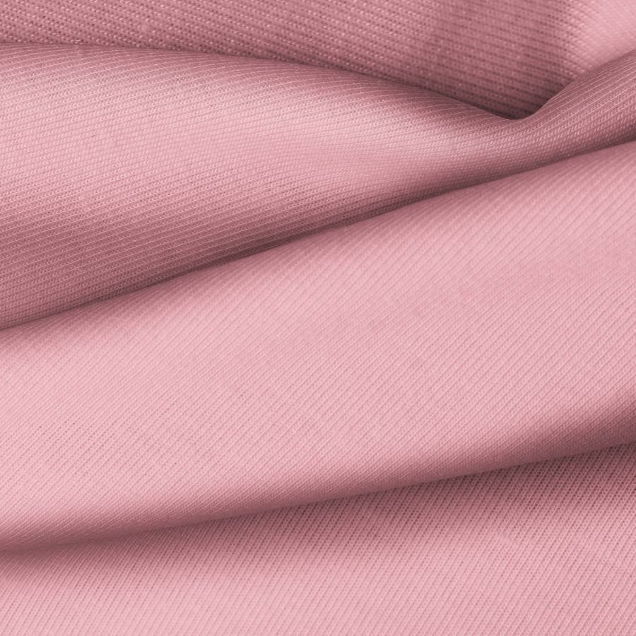 La tela base, Punto Camiseta - Vanity, es de punto con una composición de 95% POLIÉSTER, 5% ELASTÓMERO, con un gramaje de 185 gr/m2 y un ancho de 160 cm. El color liso impreso es Rosa Ruddy, con un CMYK de 10 54 30 1, lo que le da un tono cálido y vibrante. Combina especialmente bien con tonos neutros como blanco y gris.