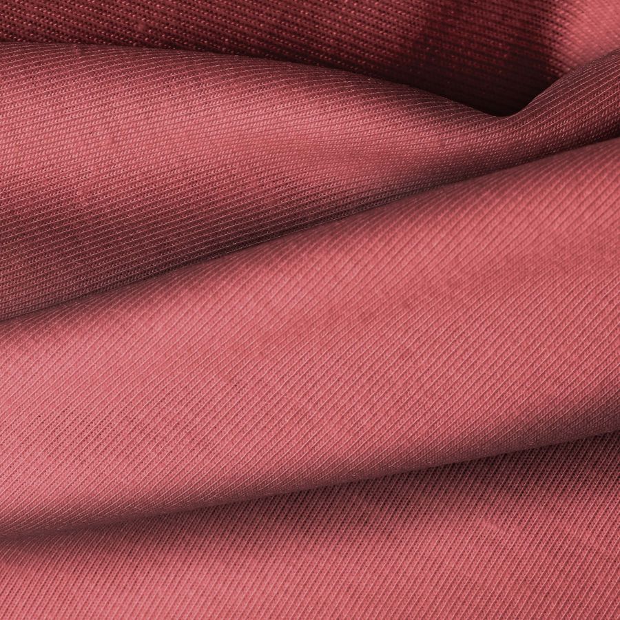 La tela base, Punto Camiseta - Vanity, presenta un color liso impreso en tono Rosa Rosé Valle, con una combinación de tintas Cyan 24, Magenta 76, Yellow 56 y Black 17 (CMYK: 24 76 56 17). Este color secundario simboliza la delicadeza y la feminidad, combinando especialmente bien con tonos neutros como blanco, gris o negro.