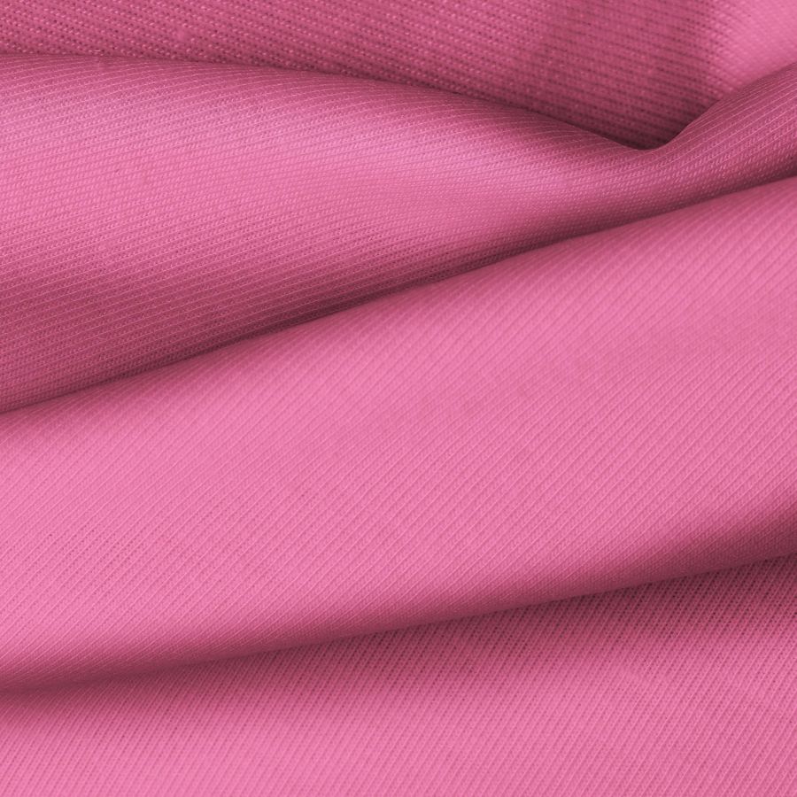 La tela base de este tejido es Punto Camiseta - Vanity en color rosa rubor, con un CMYK de 8 76 26 0. Este color suave combina especialmente bien con tonos neutros como blanco, gris y negro. El tejido está impreso con color liso a una sola cara por impresión digital textil.