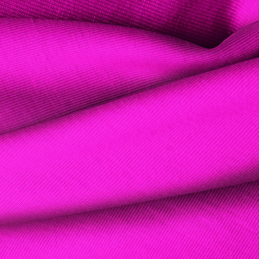 La tela base es Punto Camiseta - Vanity de color rosa shocking (CMYK: 22 83 0 0). Se caracteriza por ser suave y elástica. Combina especialmente con colores neutros como blanco, negro o gris.