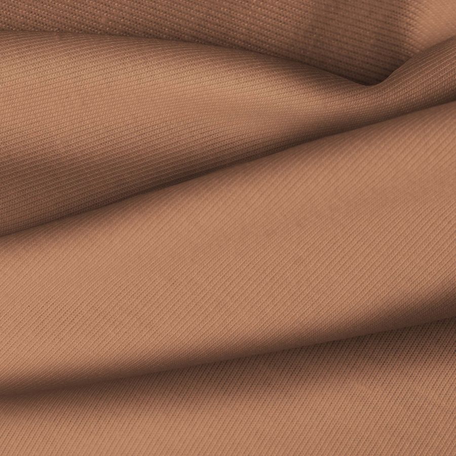La tela base es Punto Camiseta - Vanity en color marrón arcilloso, con un CMYK de 32 56 63 32. Este color simboliza la conexión con la tierra, la estabilidad y la calidez. Combina bien con tonos neutros como beige, blanco y negro, así como con tonos cálidos como el naranja y el amarillo.
