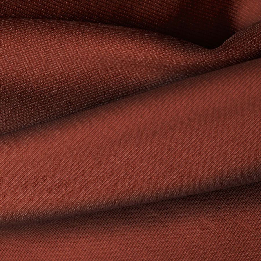 La tela base, Punto Camiseta - Vanity, presenta un color liso impreso en tonos marrón y Caput Mortuum, con un CMYK de 38 89 86 60. Este color secundario simboliza la elegancia y la profundidad, combinando de manera ideal con tonos neutros como blanco, negro y gris.