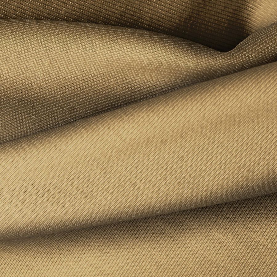 La tela base es una Punto Camiseta - Vanity de color Ocre Pardo Oscuro con un CMYK de 31 41 67 22. Este color transmite elegancia y sofisticación, combinando a la perfección con tonos neutros como el blanco, negro y gris, así como con colores cálidos como el rojo y el naranja.