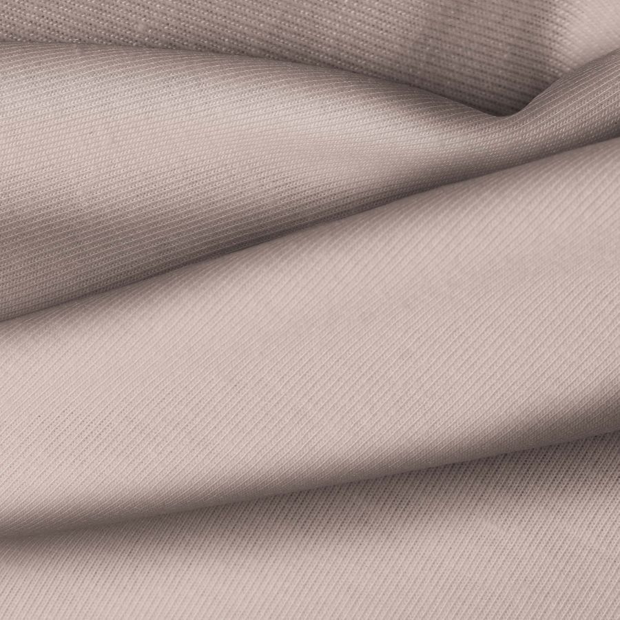 La tela base de este tejido es un Punto Camiseta - Vanity en color marrón y plata pálida, con un CMYK de 31 36 36 13. El color plata pálida es un tono suave y elegante que combina perfectamente con colores neutros como blanco, negro y gris, así como con tonos pastel. El tejido está impreso con el color liso a una sola cara por impresión digital textil.