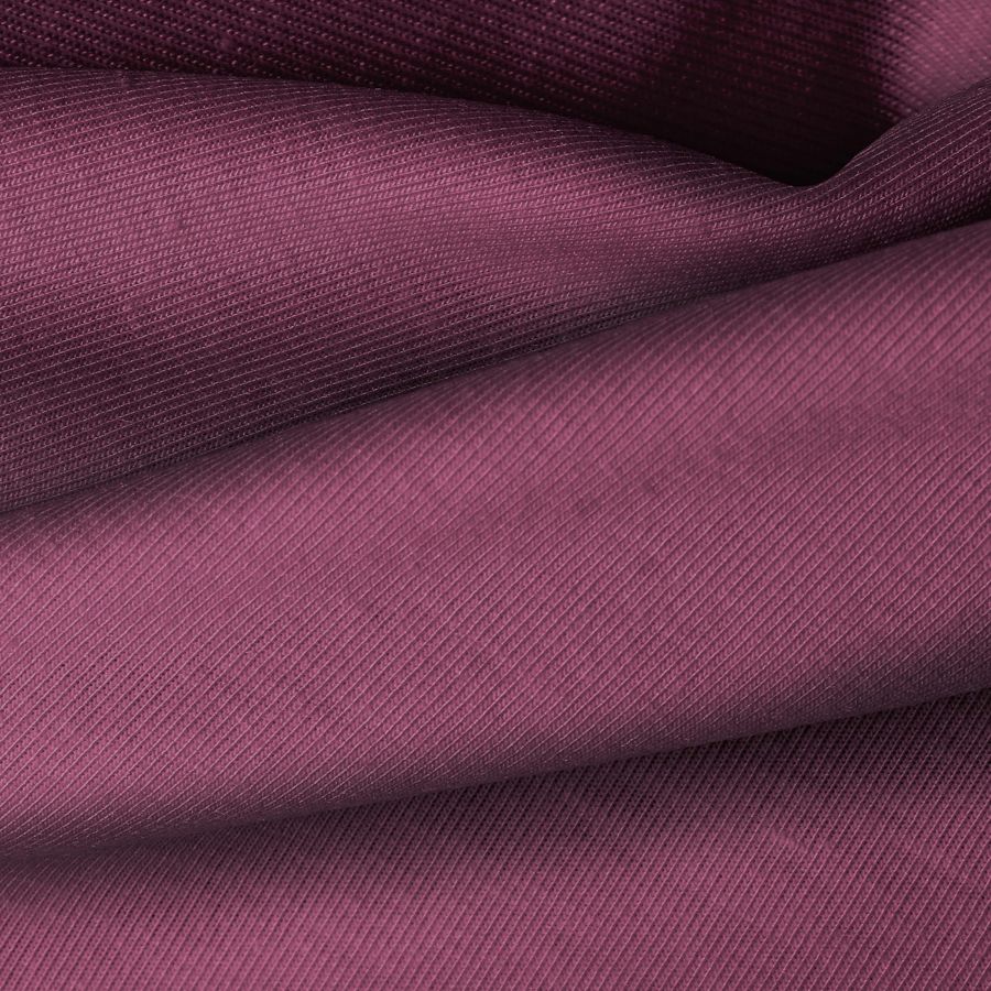 La tela base, Punto Camiseta - Vanity, es un tejido de punto suave y elástico con una composición de 95% poliéster y 5% elastómero. El color liso impreso es Morado Malva Antiguo, con un CMYK de 47 81 41 45. Este tono simboliza la elegancia y la creatividad, combinando la serenidad del malva con la profundidad del morado. Se puede combinar con tonos neutros como blanco, gris y negro para resaltar su belleza.