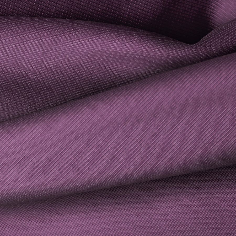 La tela base de este tejido es Punto Camiseta - Vanity, de composición 95% poliéster y 5% elastómero. El color liso impreso es Morado Bizancio Oscuro, con un CMYK de 62 78 38 36. Este color es un tono profundo y misterioso, que combina a la perfección con tonos neutros como el gris y el blanco, así como con colores más vibrantes como el fucsia o el amarillo.