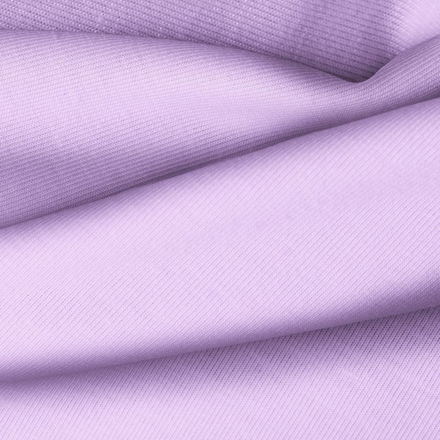 La tela base de la Punto Camiseta - Vanity es suave y elástica, con un color liso impreso en Morado Malva Antiguo (CMYK: 22 36 0 0), el cual combina perfectamente con tonos neutros como blanco, gris y negro. Este tejido está impreso con el color liso a una sola cara por impresión digital textil, lo que le proporciona una apariencia vibrante y duradera.