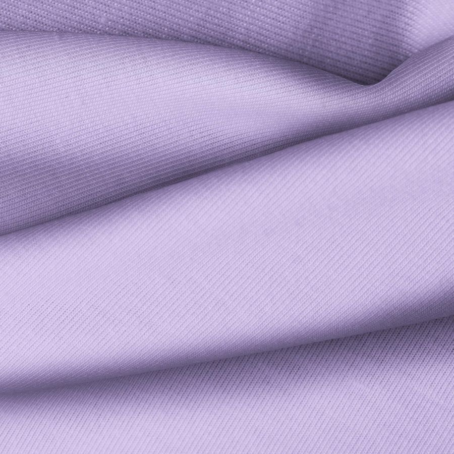 La tela base de la Punto Camiseta - Vanity es una tela de punto compuesta por 95% de poliéster y 5% de elastómero, con un gramaje de 185 gr/m2 y un ancho de 160 cm. El color liso impreso es un Morado/Púrpura Pastel con una combinación CMYK de 36 42 0 0. Este color simboliza la creatividad, la calma y la espiritualidad, y combina especialmente bien con tonos neutros como el blanco y el gris.