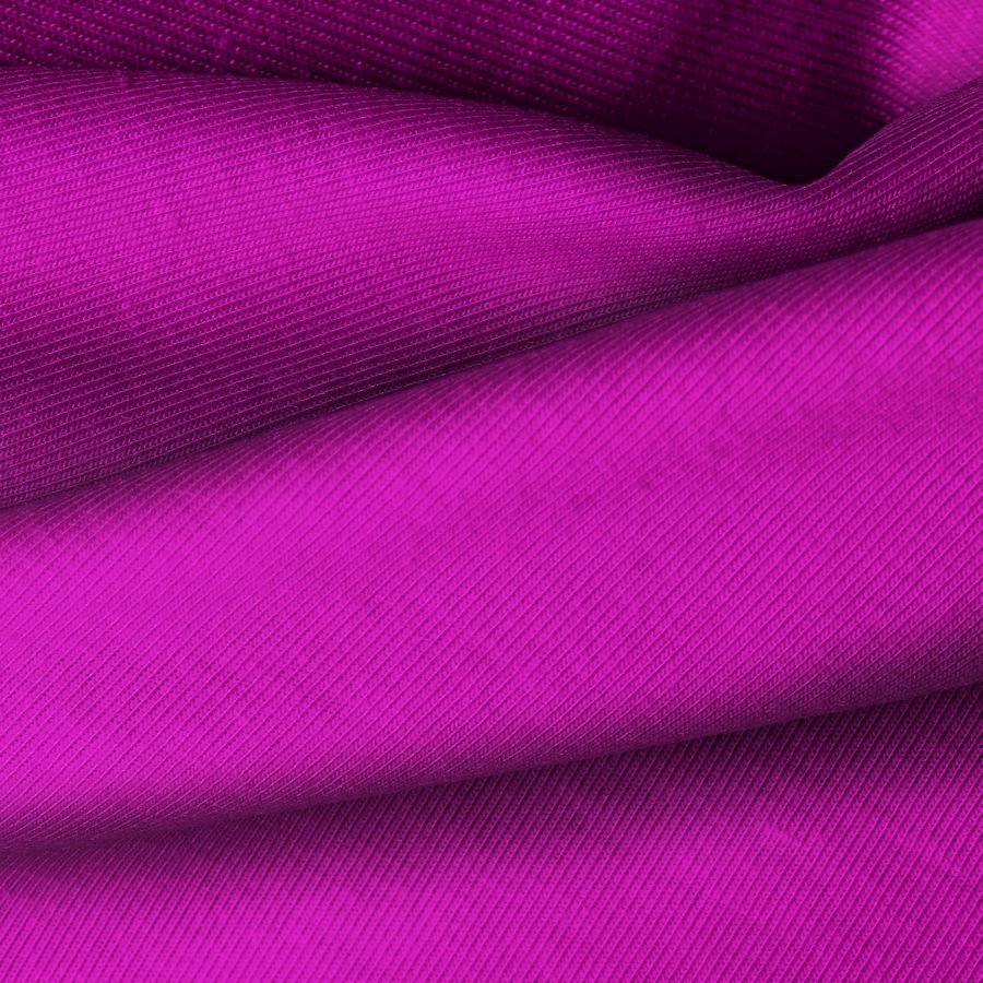 La tela base es Punto Camiseta - Vanity, de composición 95% POLIÉSTER, 5% ELASTÓMERO, con un gramaje de 185 gr/m2 y un ancho de 160 cm. El color liso impreso es Morado Borgoña vivo, con un CMYK de 45 100 0 0. Este color simboliza la elegancia y la sofisticación. Combina muy bien con tonos neutros como blanco, gris y negro, así como con tonos metalizados como dorado y plateado.