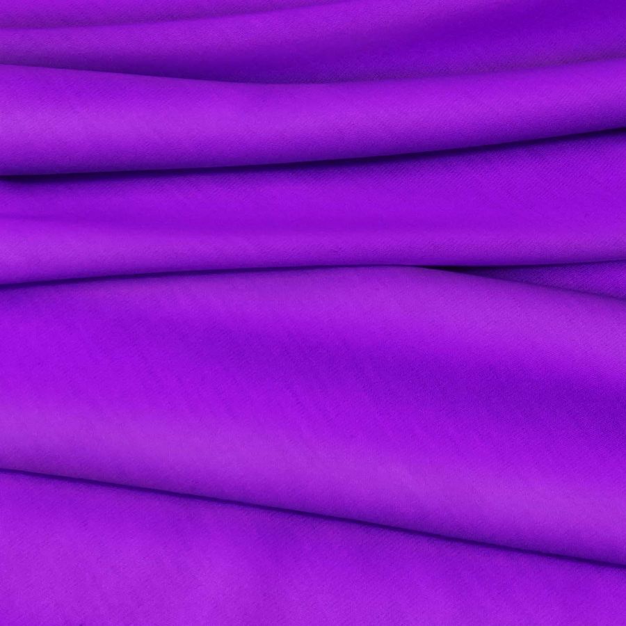 La tela base Punto Camiseta - Vanity es de composición 95% poliéster y 5% elastómero, con un gramaje de 185 gr/m2 y un ancho de 160 cm. El color liso impreso es Morado BlueViolet, con una composición de CMYK 72 81 0 0. Este color secundario simboliza la creatividad y la espiritualidad, combina muy bien con tonos neutros como blanco, gris y negro.