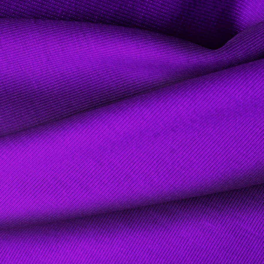 La tela base está impresa con el color liso Morado a una sola cara por impresión digital textil, lo que garantiza una alta calidad y durabilidad en el estampado. Sus características generales incluyen su suavidad, elasticidad y resistencia, lo que la hace perfecta para prendas de ropa de uso diario.
