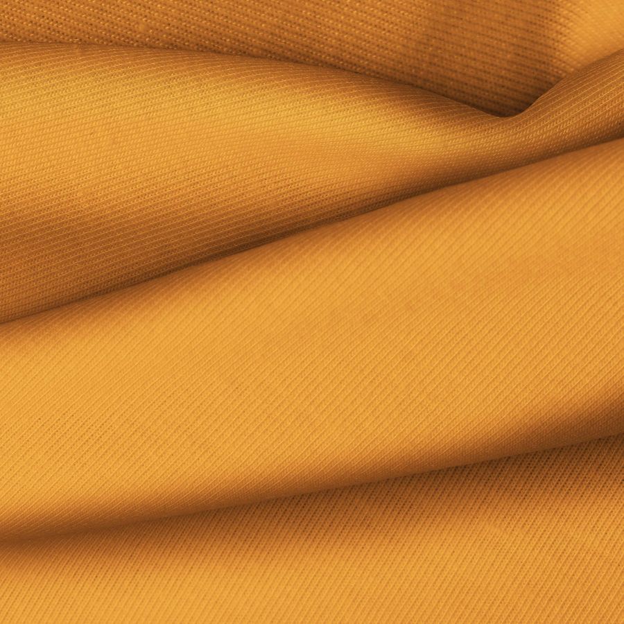 La tela base, Punto Camiseta - Vanity, es una tela de punto compuesta por 95% poliéster y 5% elastómero, con un gramaje de 185 gr/m2 y un ancho de 160 cm. El color liso impreso en esta tela es Naranja Caqui, con una composición CMYK de 11 61 89 1, lo que le otorga un tono cálido y vibrante. Este color combina perfectamente con tonos neutros como blanco, gris y negro, así como con colores tierra como marrón y verde oliva.