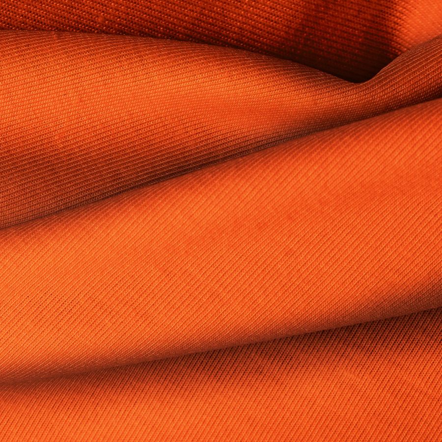 La tela base es la Punto Camiseta - Vanity, de composición 95% poliéster y 5% elastómero, con un gramaje de 185 gr/m2 y un ancho de 160 cm. El color liso impreso es Naranja Puro, con una mezcla de tinta cyan, magenta y yellow en un porcentaje de 0%, 82%, 94% respectivamente y 0% de tinta black, reflejando un CMYK de 0 82 94 0. Este tono naranja brillante se destaca por su calidez y vitalidad, combinando especialmente bien con colores complementarios como el azul y el verde, creando un contraste vibrante y equilibrado.