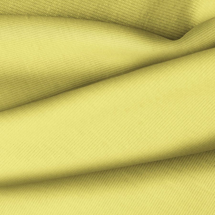 La tela base, Punto Camiseta - Vanity, es de punto con composición de 95% poliéster y 5% elastómero, con un gramaje de 185 gr/m2. El color liso impreso es Amarillo Ámbar, con una combinación de tintas Cyan 15, Magenta 12, Yellow 72 y Black 1 en CMYK. Este color secundario simboliza la energía y creatividad, complementándose perfectamente con tonos neutros como negro, blanco y gris.