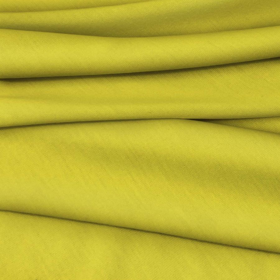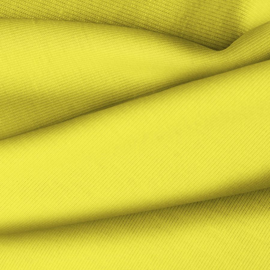 La tela base es una Punto Camiseta - Vanity de 95% poliéster y 5% elastómero, con un color liso impreso en tonos de Amarillo Azufre con un CMYK de 10 6 84 0. Este color evoca calidez y alegría, complementándose perfectamente con tonos neutros como blancos, grises y negros, así como con tonos complementarios como el azul y el morado.